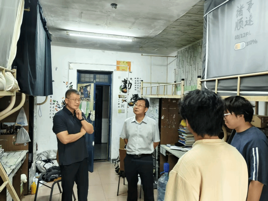 座谈会结束后,学院领导走访学生宿舍,实地检查宿舍安全与卫生情况。重点强调了严禁违规使用电器的要求,细致查看宿舍用电设施,提醒同学们时刻注意用电安全;同时,也对宿舍卫生维护提出建议,鼓励大家共同营造整洁、舒适、安全的居住环境。